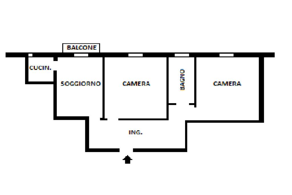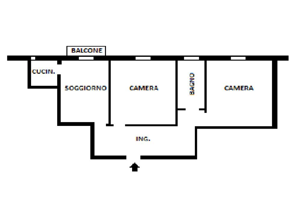 La disposizione interna comprende cucinotto e tinello che permette l'acceso ad un balcone, due camere da letto matrimoniali e bagno.
