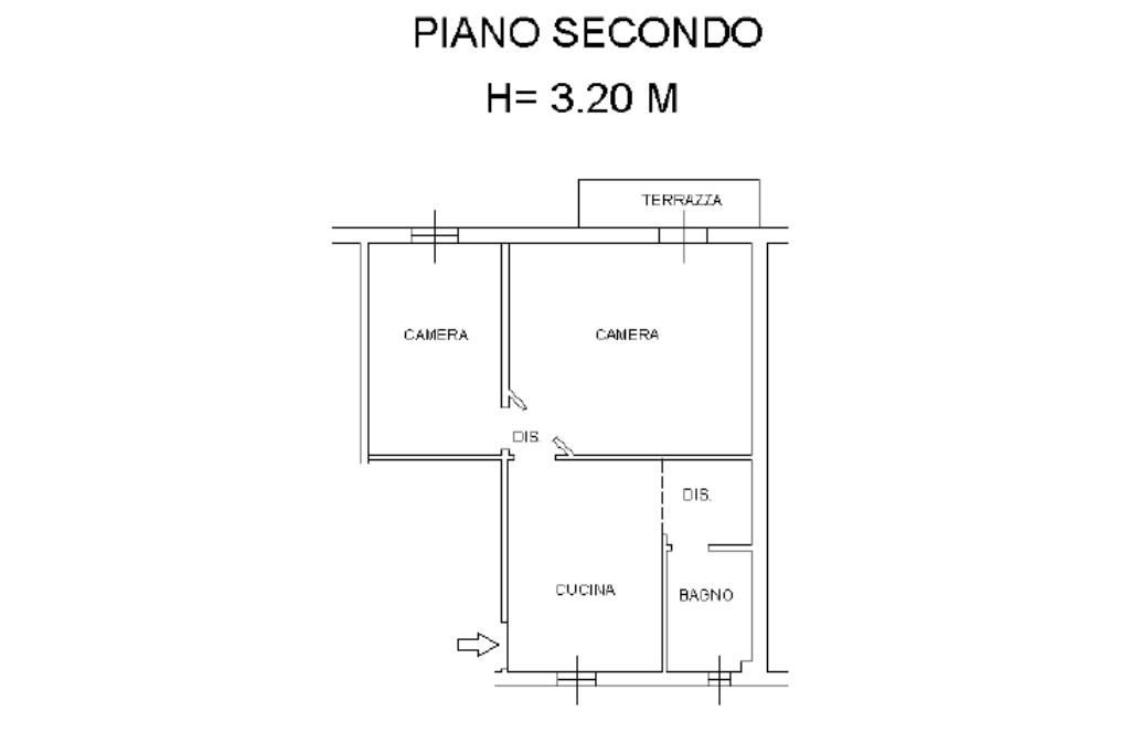 Situato al piano secondo l'appartamento si sviluppa con ingresso sul soggiorno con angolo cottura, due camere da letto, una delle quali servita da un balcone, bagno e cantina.